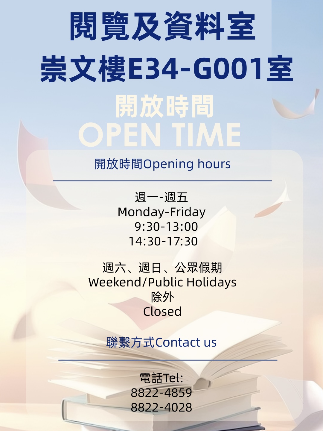 閱覽及資料室開放時間