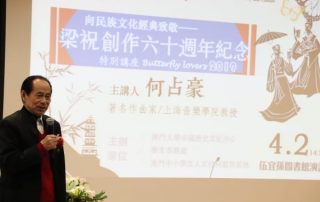 著名音樂家何占豪澳大談《梁祝》創作 澳門大學中國歷史文化中心舉辦了“向民族文化經典致敬”的啟動儀式,邀請了著名音樂家、小提琴協奏曲《梁祝》創作者何占豪教授演講,分享《梁祝》的創作心得及演繹風格。